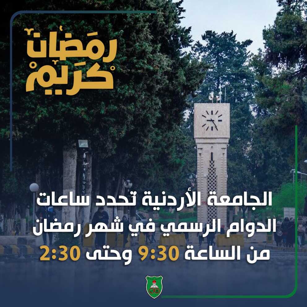 الجامعة الأردنية تُحدّد ساعات الدوام الرسميّ في رمضان