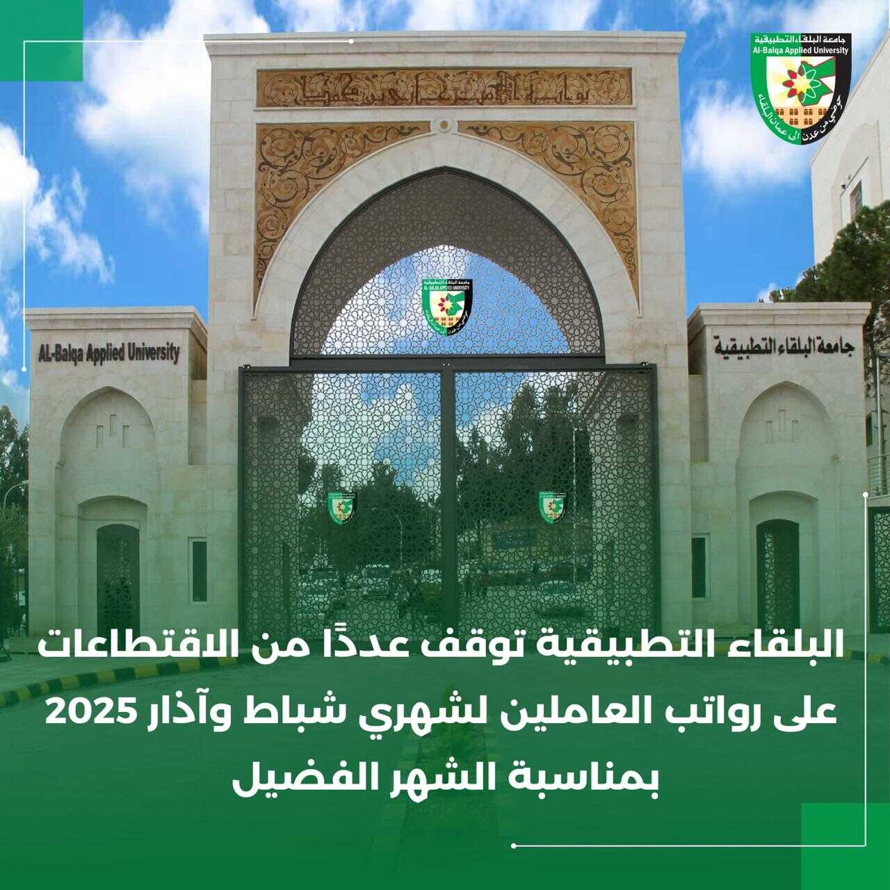 في بادرة تهدف إلى تخفيف الأعباء المالية عن العاملين ... البلقاء التطبيقية توقف عددًا من الاقتطاعات على رواتب العاملين لشهري شباط وآذار