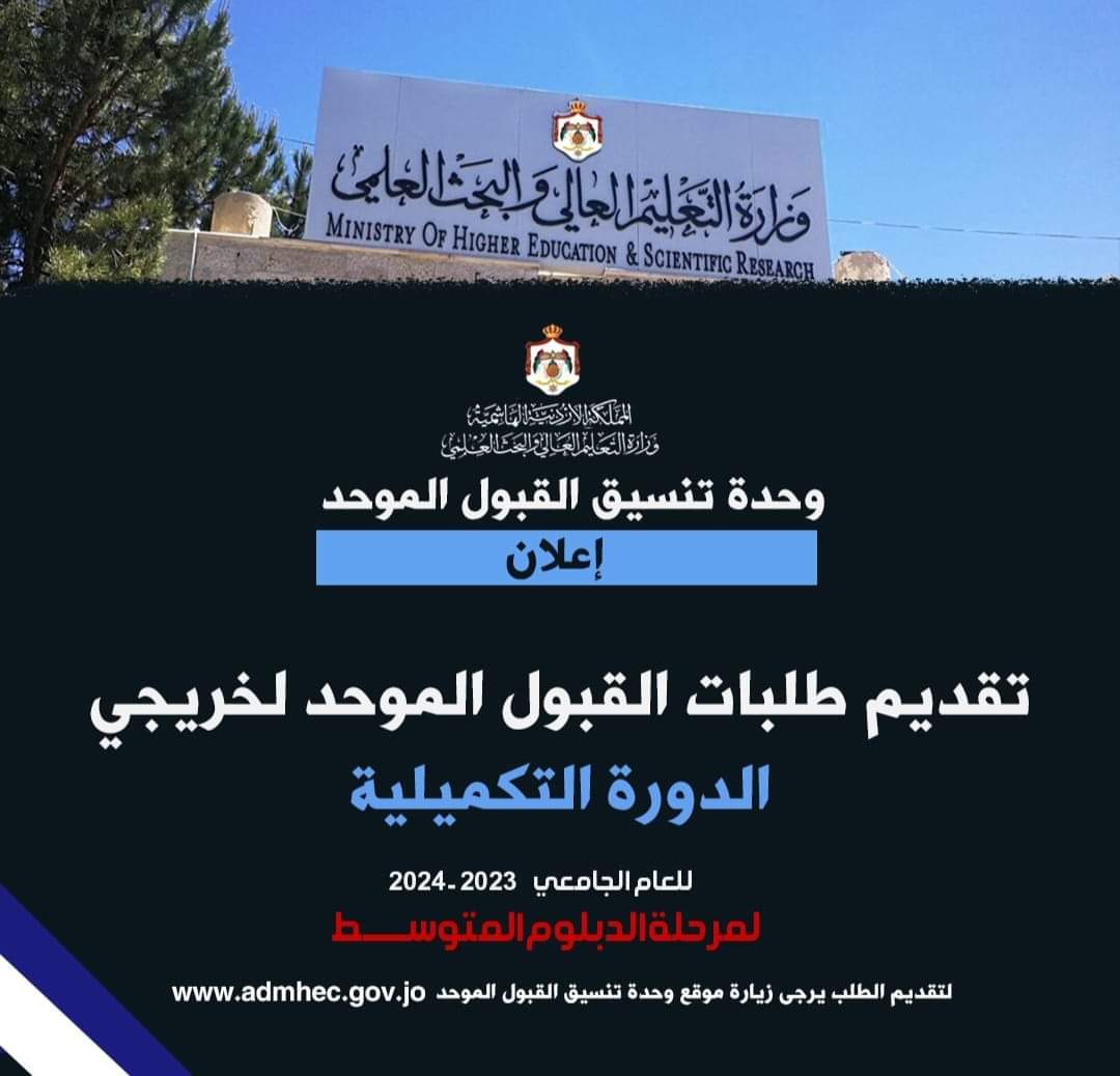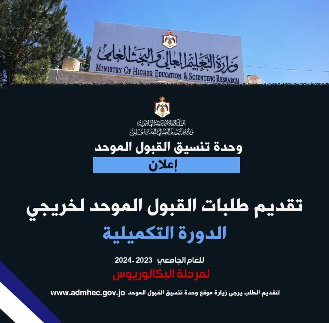 القبول الموحد يعلن عن موعد تقديم طلبات الالتحاق في الجامعات الرسمية لمرحلة البكالوريوس للدورة التكميلية