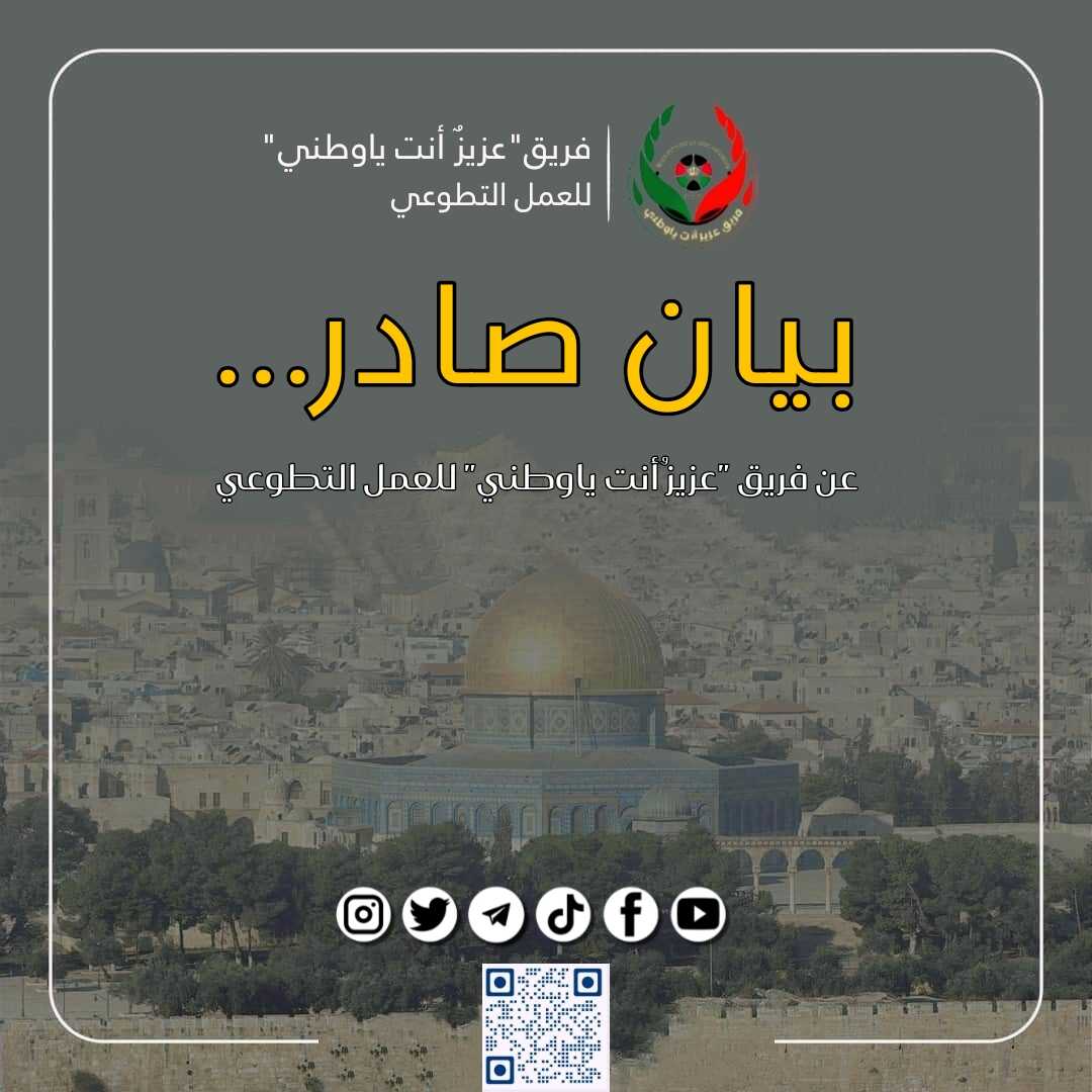 بيان صادر عن فريق "عزيز أنت يا وطني" للعمل التطوعي بشأن ما يجري في فلسطين