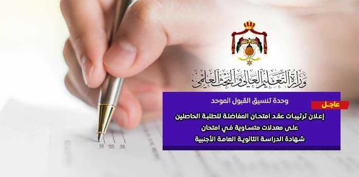 وحدة تنسيق القبول الموحد تعلن عن موعد عقد امتحان المفاضلة المقرر للطلبة الأردنيين الحاصلين على معدلات متساوية في شهادة الدراسة الثانوية العامة الأجنبية
