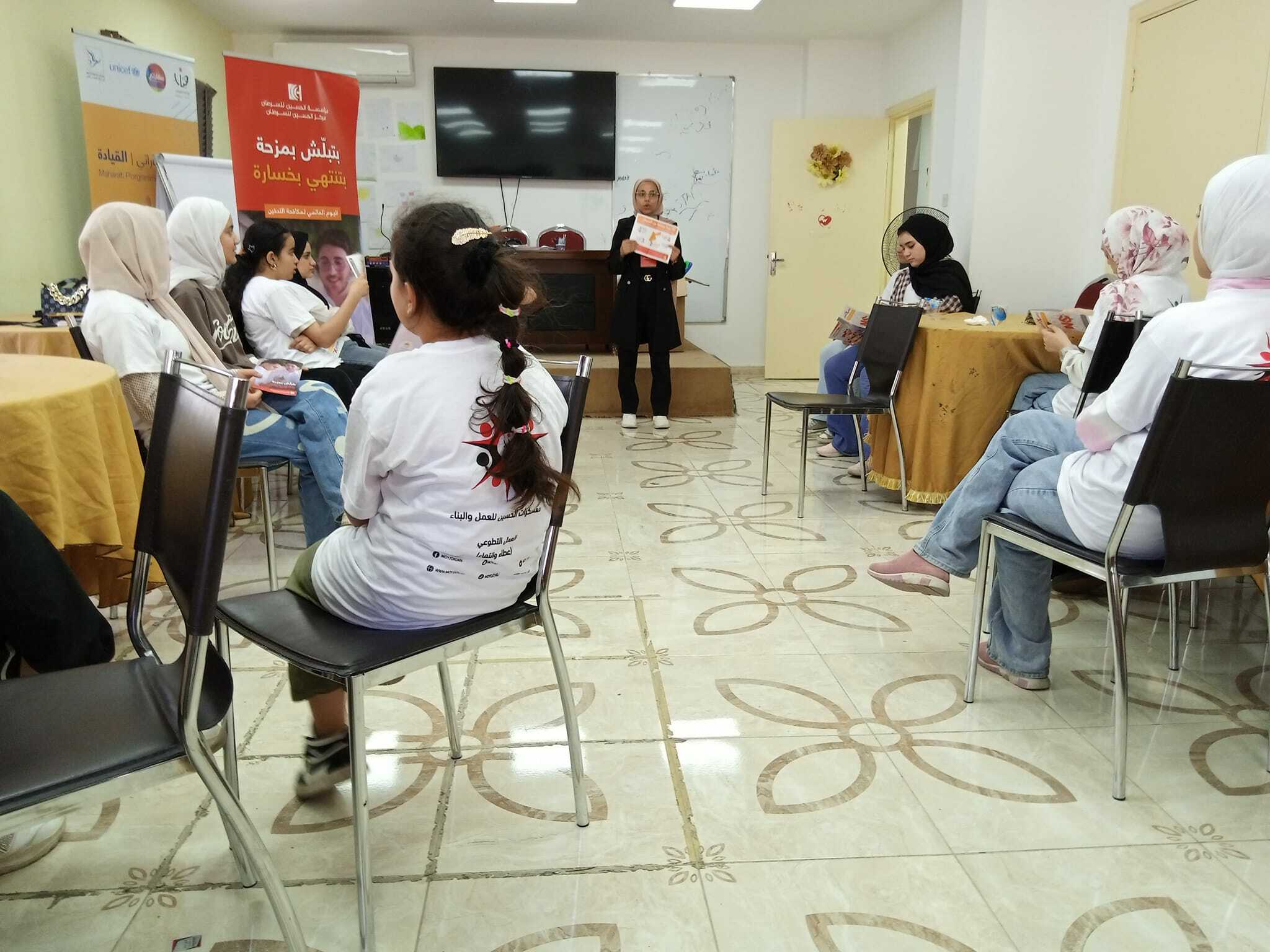 جلسة تفاعلية توعوية نفذتها مؤسسة الحسين للسرطان بالتعاون مع مركز شابات الوسطية
