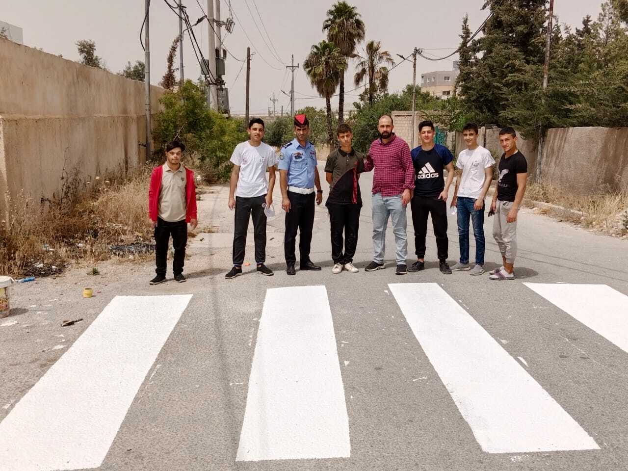 نشاط "رسم ممرات مشاه في لواء المزار الشمالي" ينفذه مركز شباب المزار الشمالي بالتعاون مع المعهد المروري و الشرطة المجتمعية في مركز أمن لواء المزار الشمالي