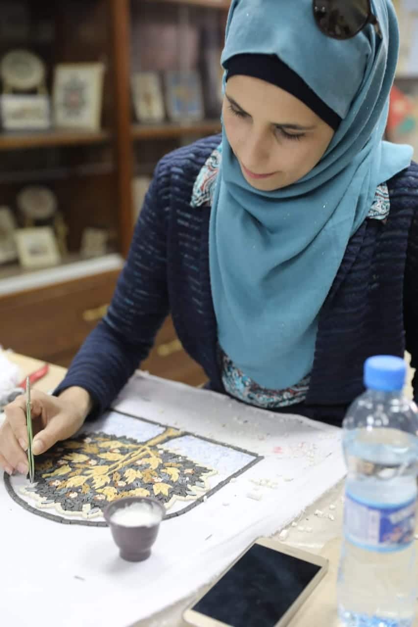 نُسيبة ذات الإعاقة السمعية تحترف فن الفسيفساء بتشكيلاته الأخاذة