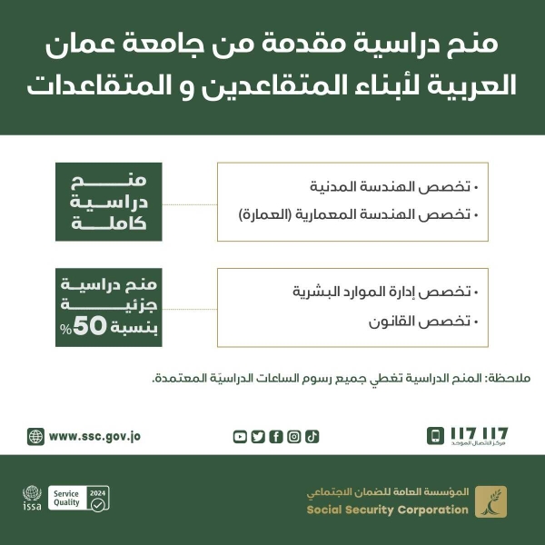 منح دراسية جامعية لأبناء متقاعدي الضمان .. تفاصيل
