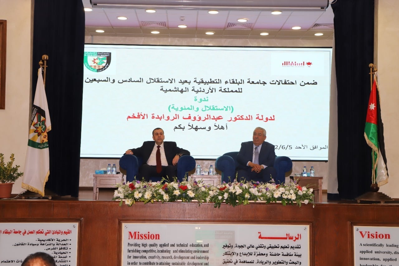 الروابدة يحاضر في ندوة " الاستقلال والمئوية" في البلقاء ..صور