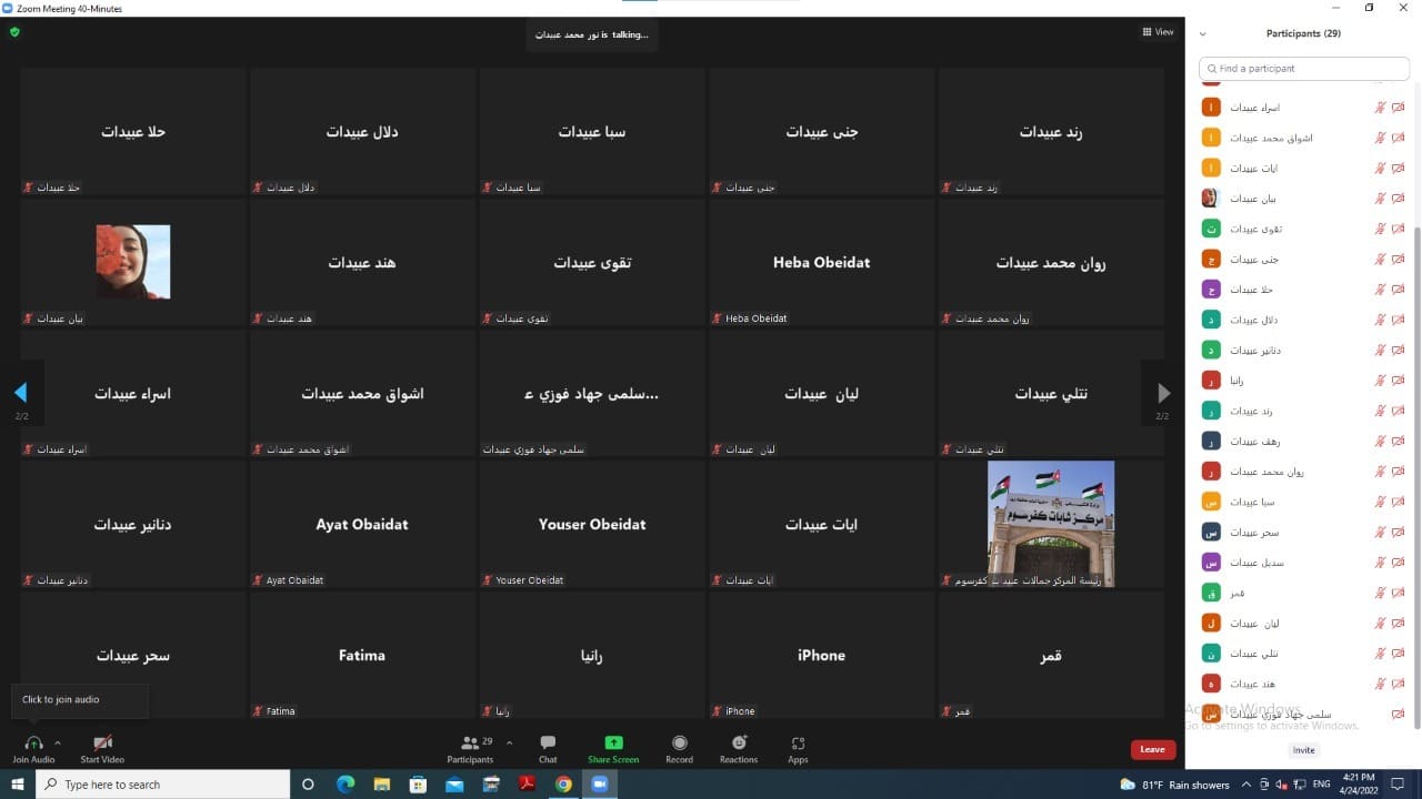 حوارية عبر تطبيق زووم لشابات كفرسوم