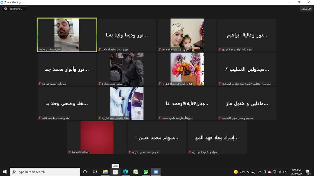 حوارية حول الاوراق النقاشية للملك عبر تطبيق زووم لشابات كفرسوم