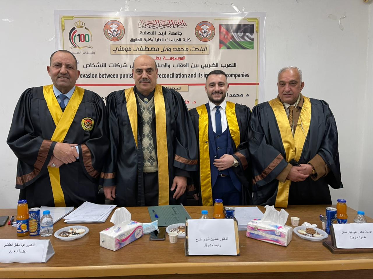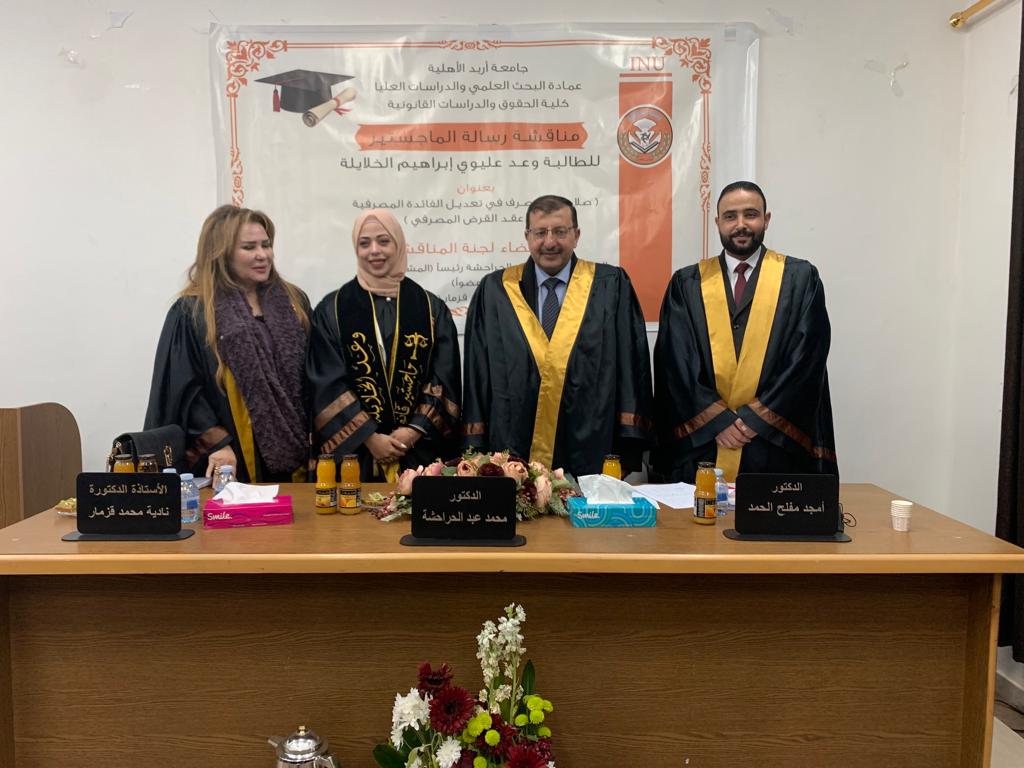 مناقشة رسالة ماجستير في القانون للطالبة وعد الخلايلة في جامعة إربد الأهلية
