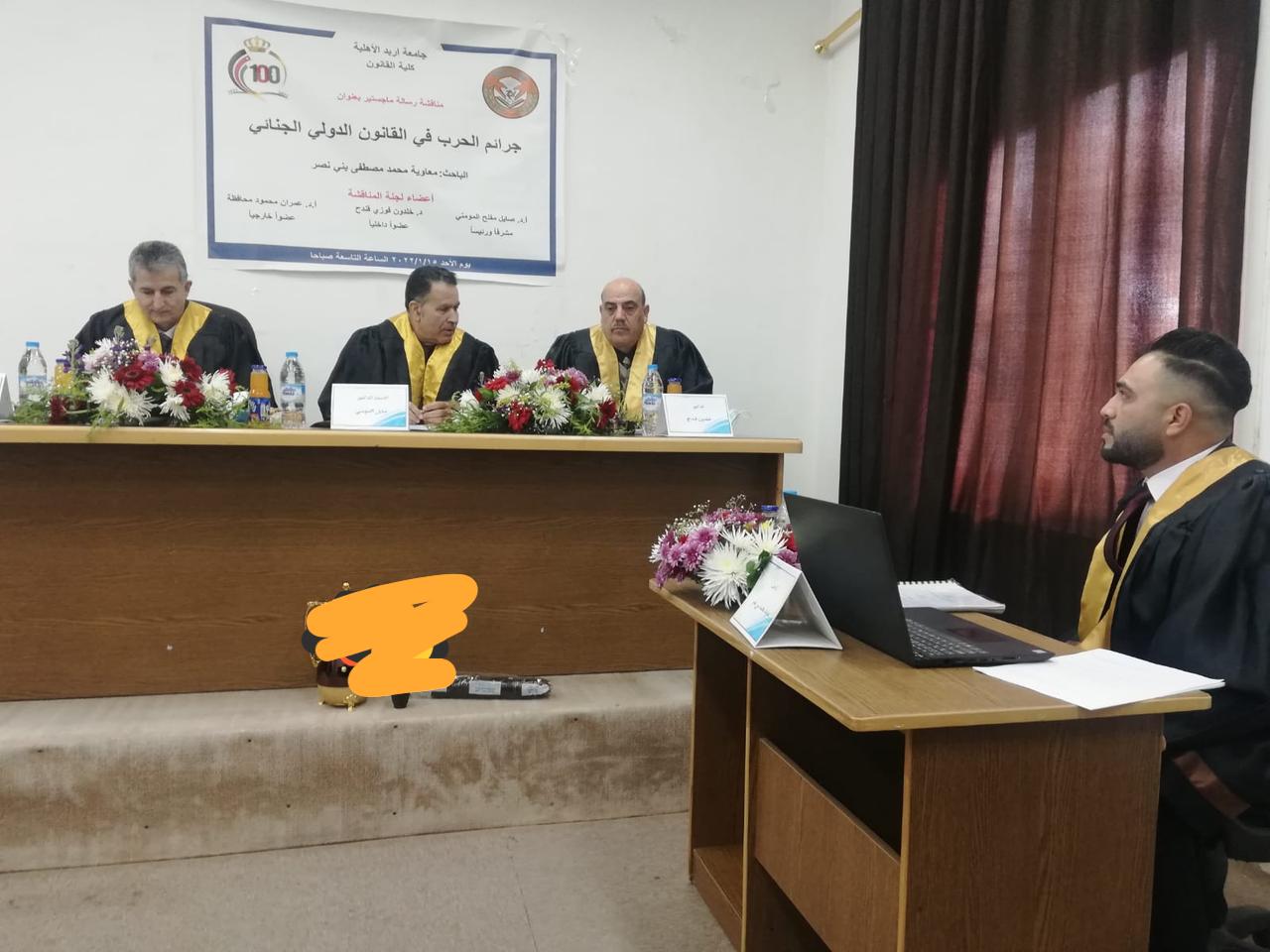 مناقشة رسالة ماجستير في القانون للطالب بني نصر