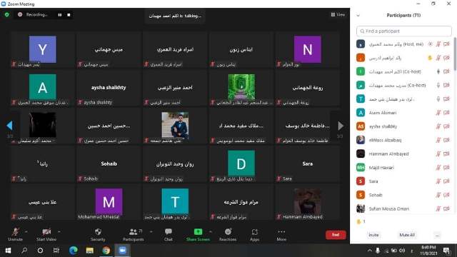 محاضرة عن الخطة الوطنية بشباب الوسطية عبر تطبيق زووم