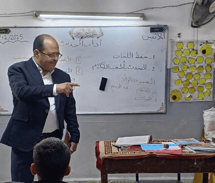 أبو الفول يشارك طلبة مدرسة الرحيل الأساسية الثانية المختلطة فعاليات الطابور الصباحي