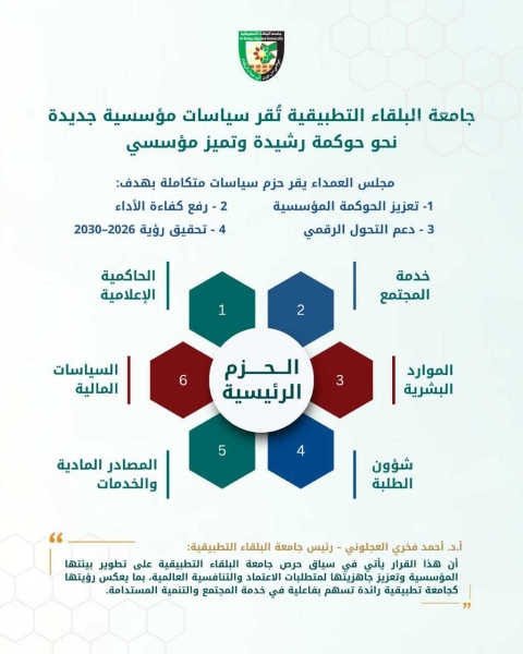 مجلس عمداء جامعة البلقاء التطبيقية يقر حزمًا متكاملة من السياسات المؤسسية لتعزيز الحوكمة والتميز المؤسسي
