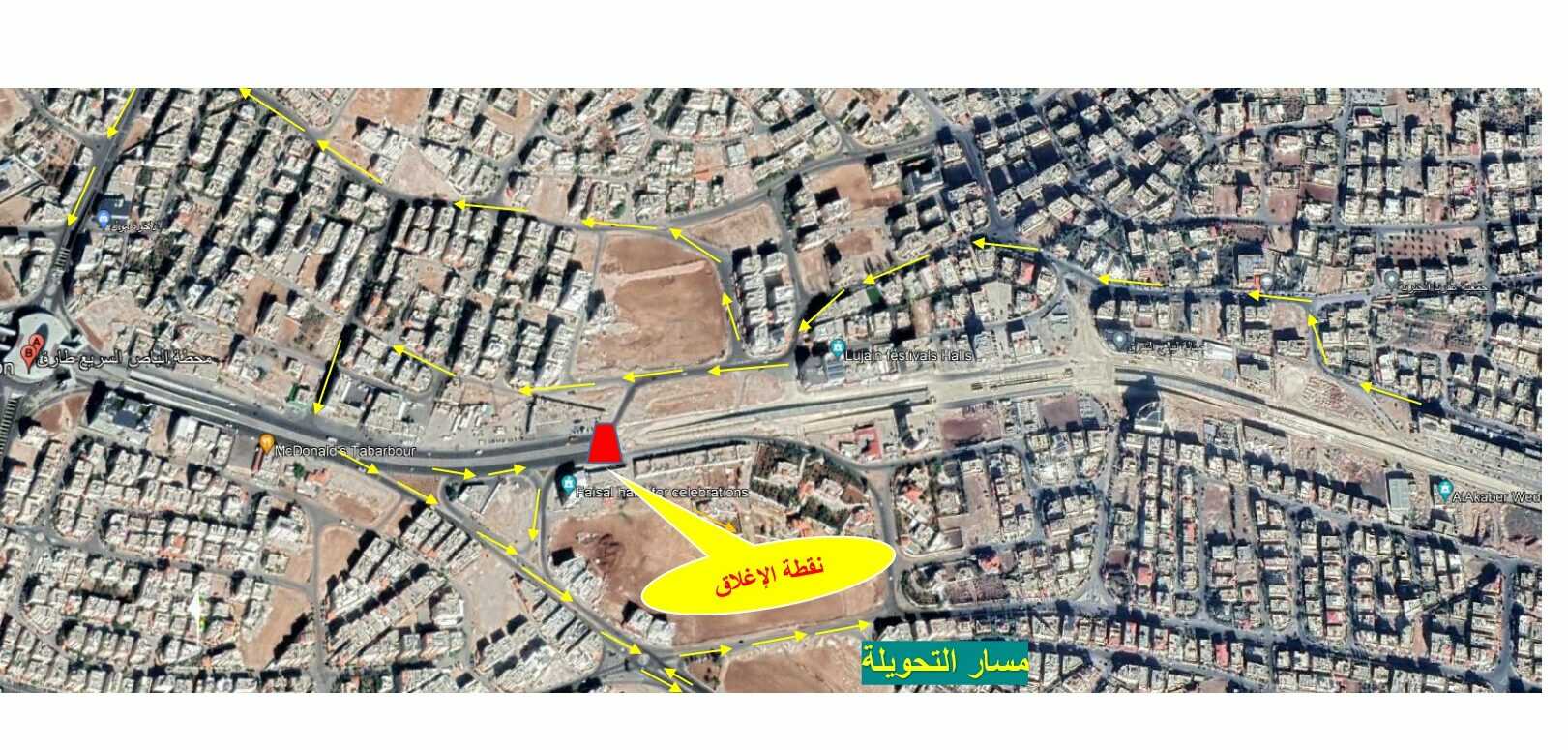 الامانة : تعديل مروري مؤقت فجر الجمعة لمسار التحويلة المرورية القائمة على تقاطع شارع الشهيد