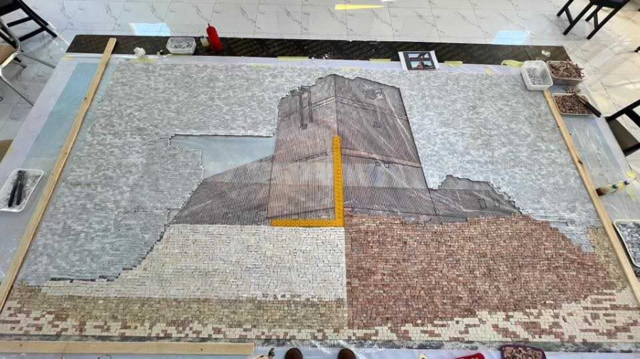 بلدية ام الجمال تنفذ جداريات فسيفسائية على مدخل المدينة الأثرية