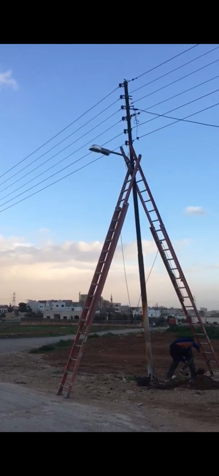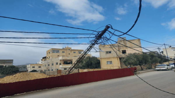 بلدية الموقر وشركة الكهرباء تتعاملان مع عمود كهرباء شكل خطورة في قرية سالم