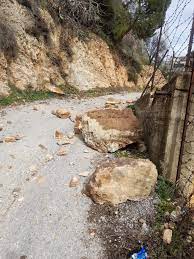 بلدية جرش تعمل على إزالة انهيار صخري بمنطقة سوف