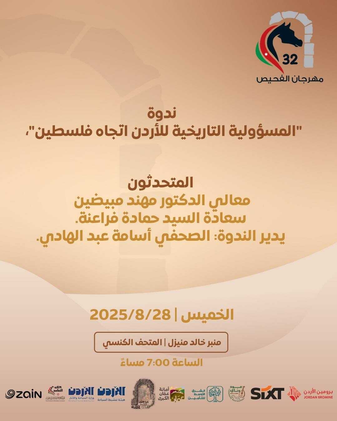 "مهرجان الفحيص" يناقش المسؤولية التاريخية للأردن اتجاه فلسطين