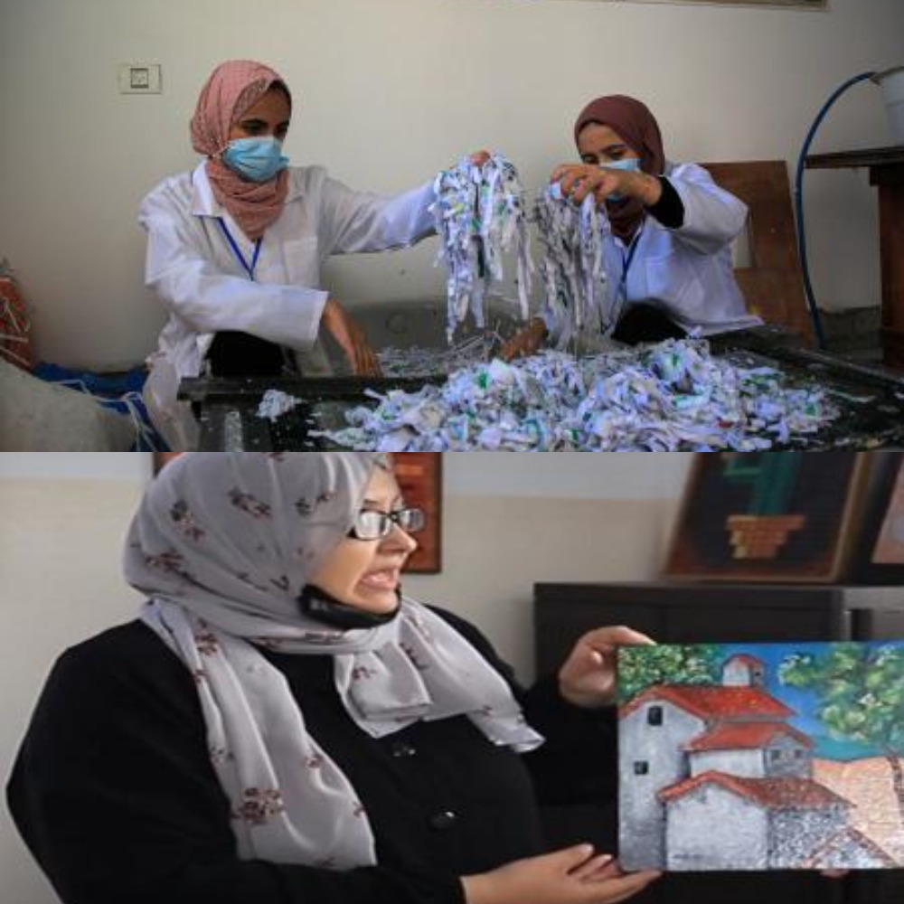 بسواعد “هدى وزوجها”.. “نفايات الورق” بغزة تتحول إلى ألواح رسم