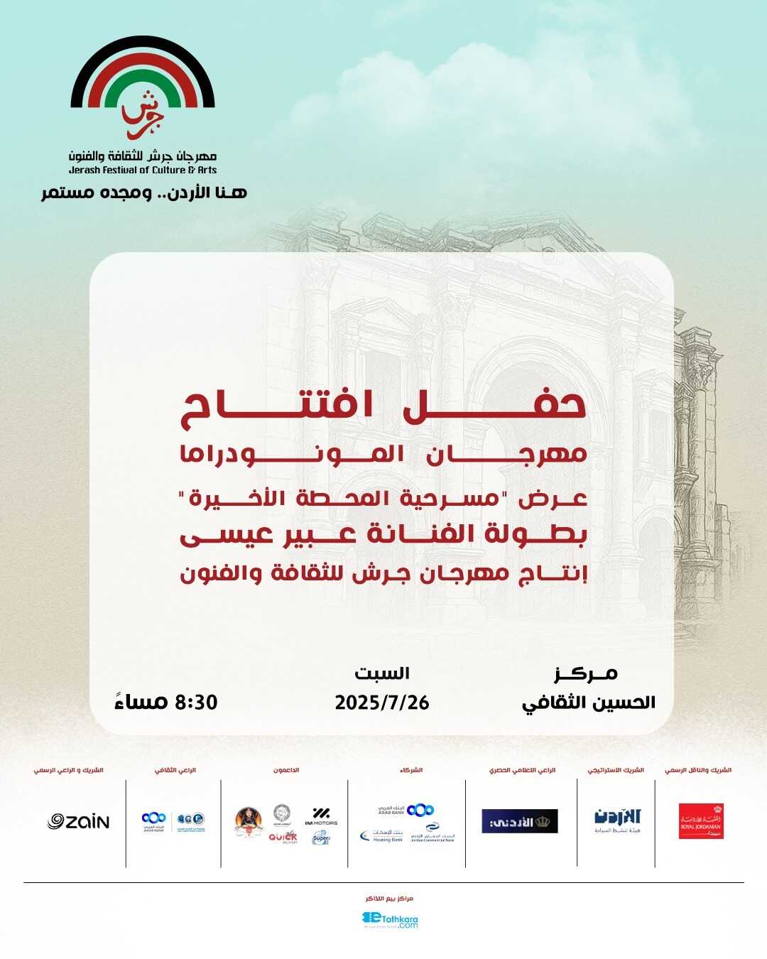 "المحطة الأخيرة" في افتتاح مهرجان المونودراما ضمن فعاليات جرش 39