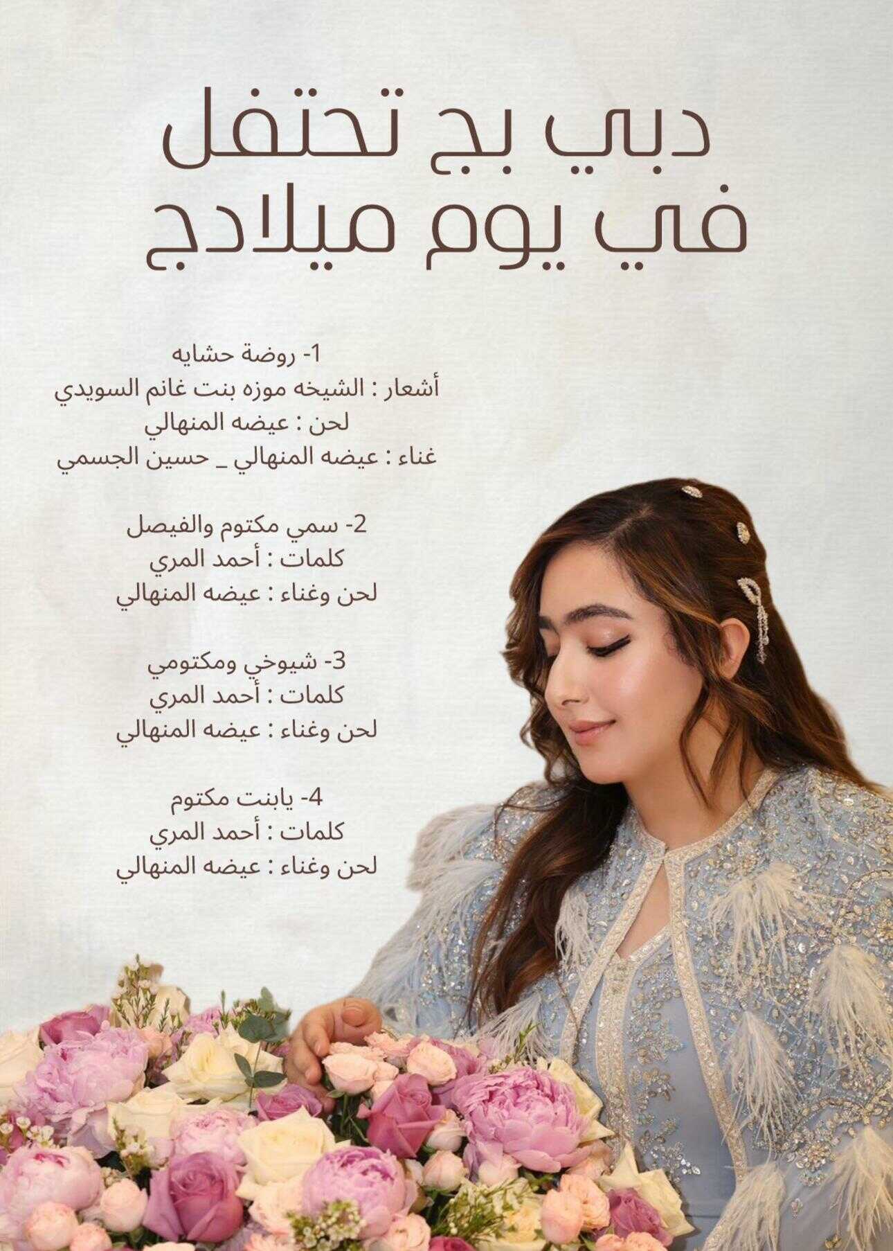أربعة أعمال غنائية تحتفي بيوم ميلاد الشيخة روضة بنت مكتوم بن راشد آل مكتوم بصوت عيضة المنهالي