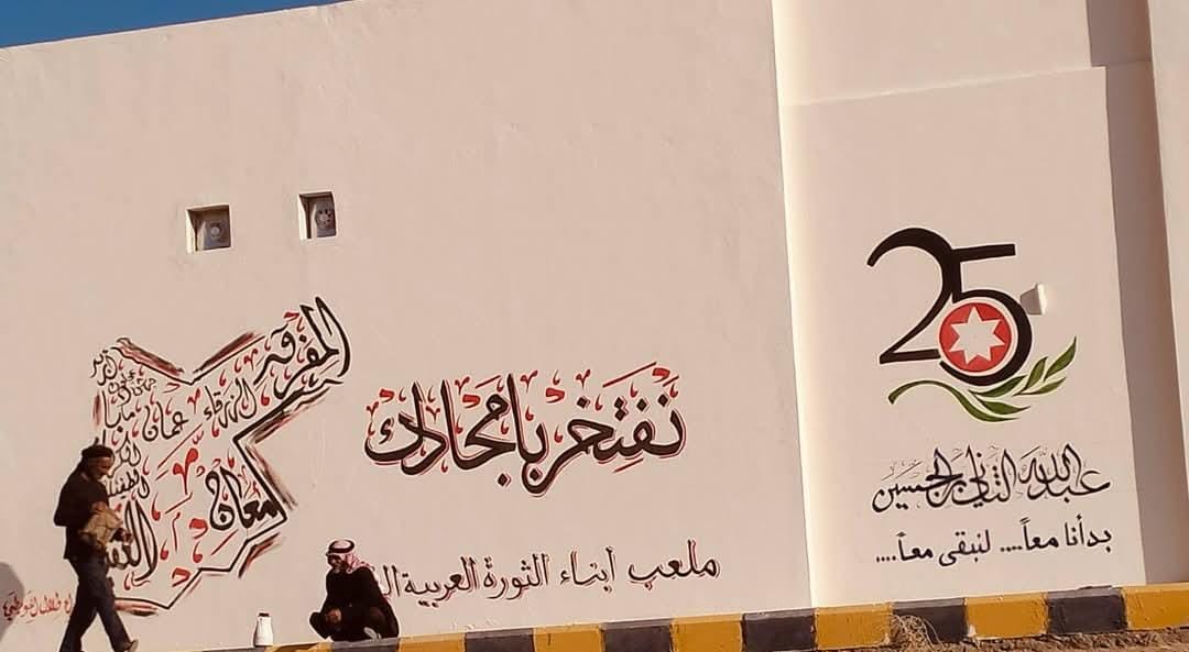 الفنان طلال الحويطات يزين جدران ملعب دبة حانوت بعيد ميلاد القائد