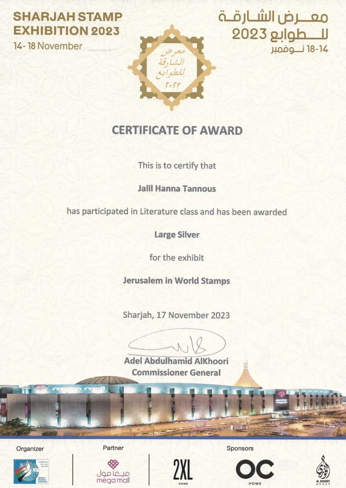 "مدينة القدس في الطوابع العالمية" كتاب يحصد فضية معرض الشارقة