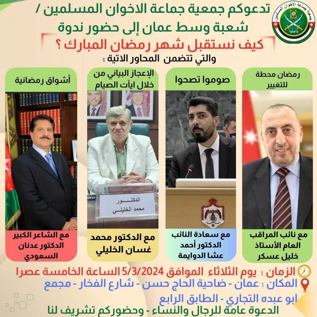 محاضرة حول استقبال شهر رمضان في جمعية جماعة الإخوان المسلمين