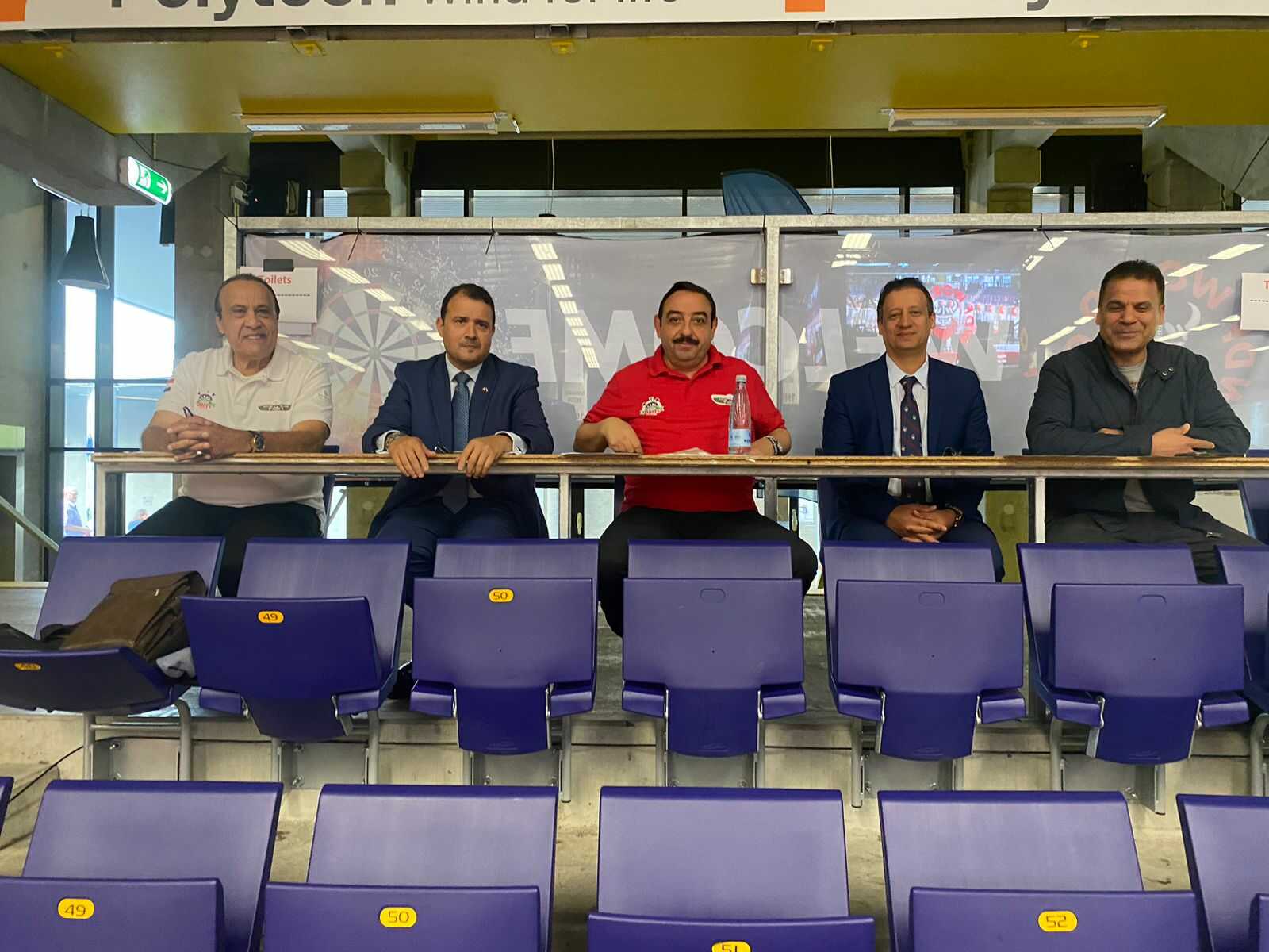 من المدرجات سفير مصر لدى الدنمارك يؤازر منتخب مصر للدارتس بكأس العالم