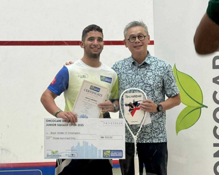 البطاينة يظفر بالميدالية الذهبية في بطولة سنغافورة للسكواش تحت سن 17