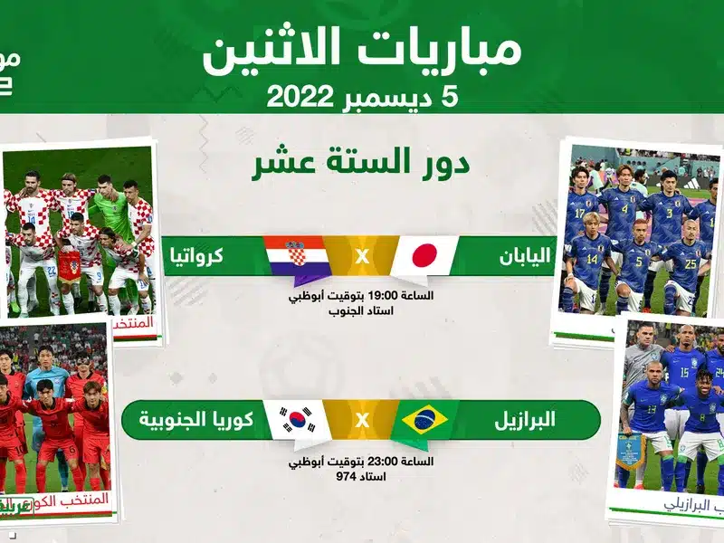 مباراتان بين كرواتيا واليابان والبرازيل مع كوريا الجنوبية في مونديال قطر