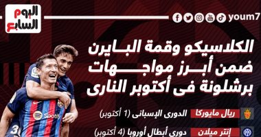 الكلاسيكو وقمة البايرن ضمن أبرز مواجهات برشلونة فى أكتوبر.. إنفو جراف