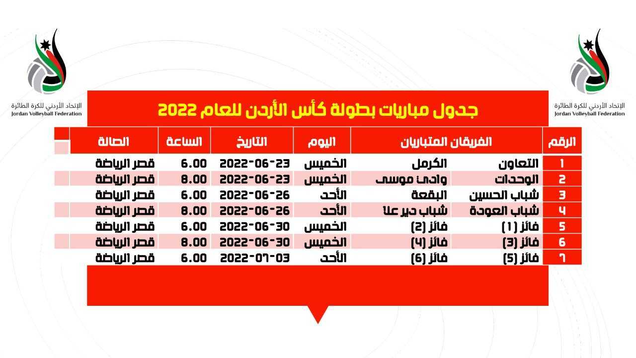 إصدار جدول لقاءات بطولة كأس الأردن للكرة الطائرة