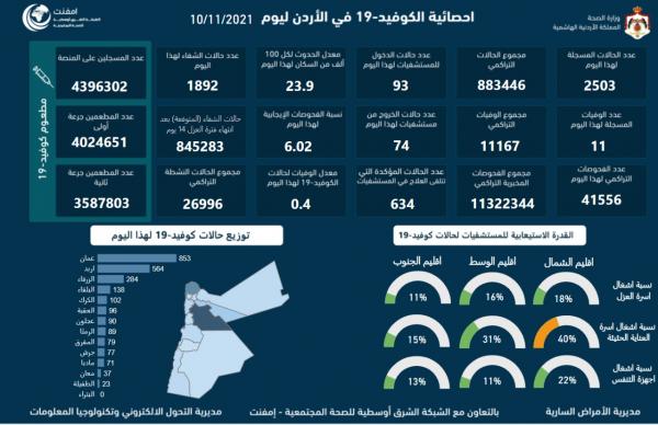 11 وفاة و2503 اصابة بالكورونا اليوم
