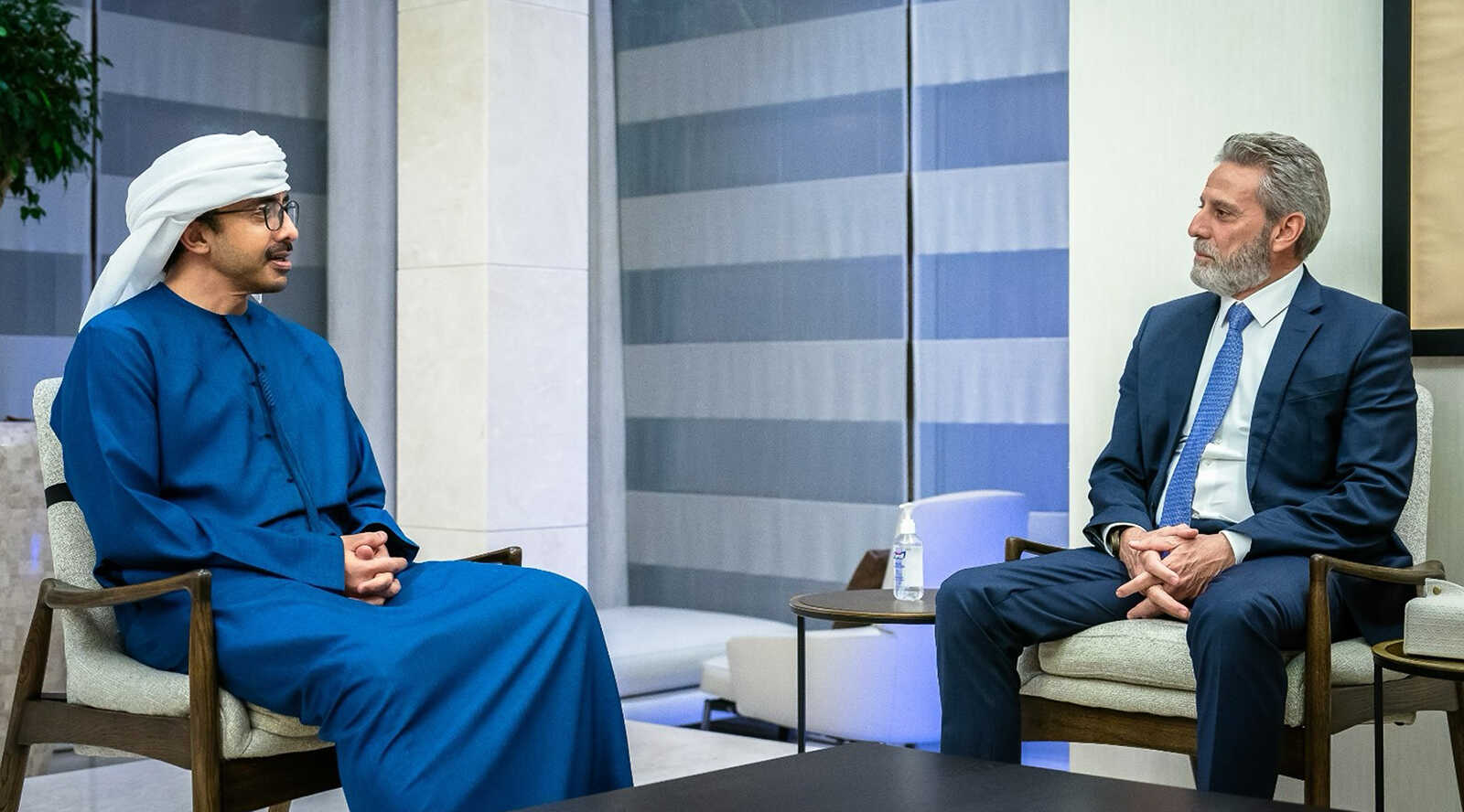 عبد الله بن زايد ومهند هادي يبحثان جهود الاستجابة للأوضاع الإنسانية في غزة