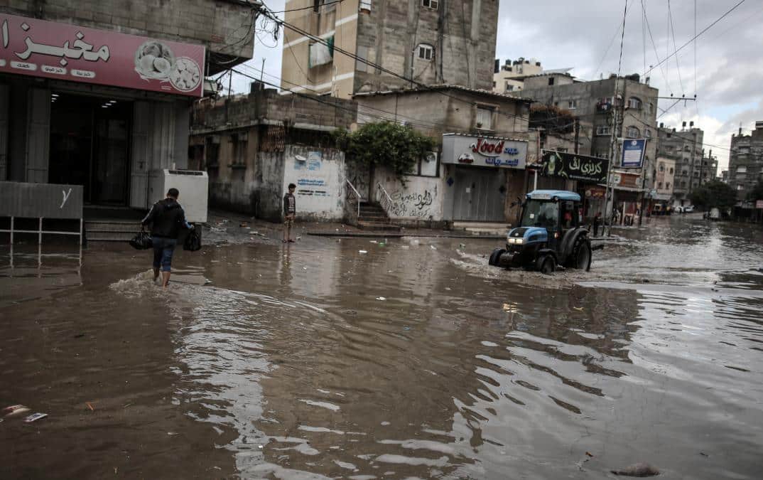 مياه الأمطار والصرف الصحي تداهم مراكز الإيواء في قطاع غزة