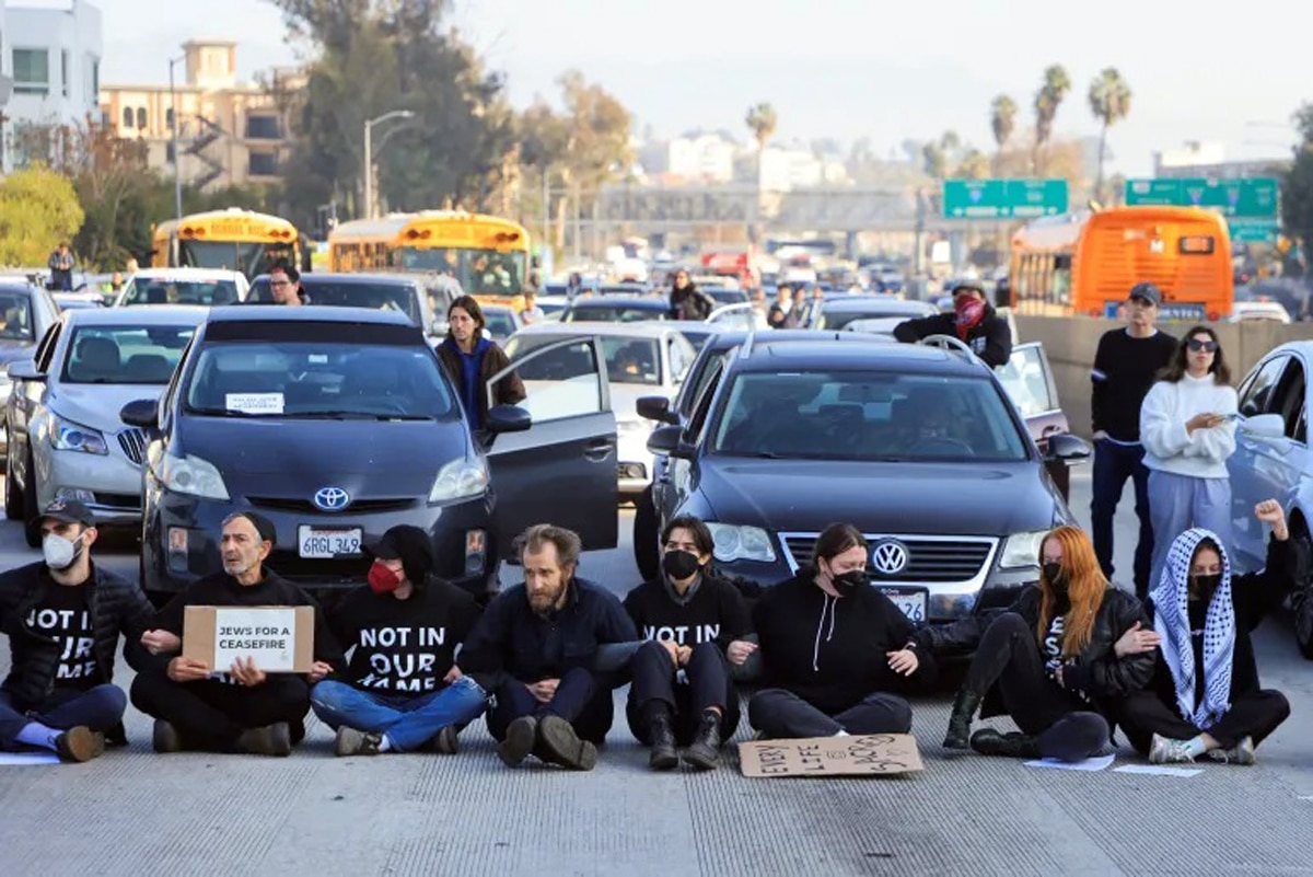 متظاهرون يهود في لوس أنجلوس يغلقون طريقا للمطالبة بوقف العدوان على غزة