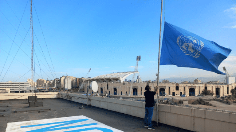 تنكيس علم الأمم المتحدة حدادا على استشهاد 101 من موظفي الأونروا بغزة