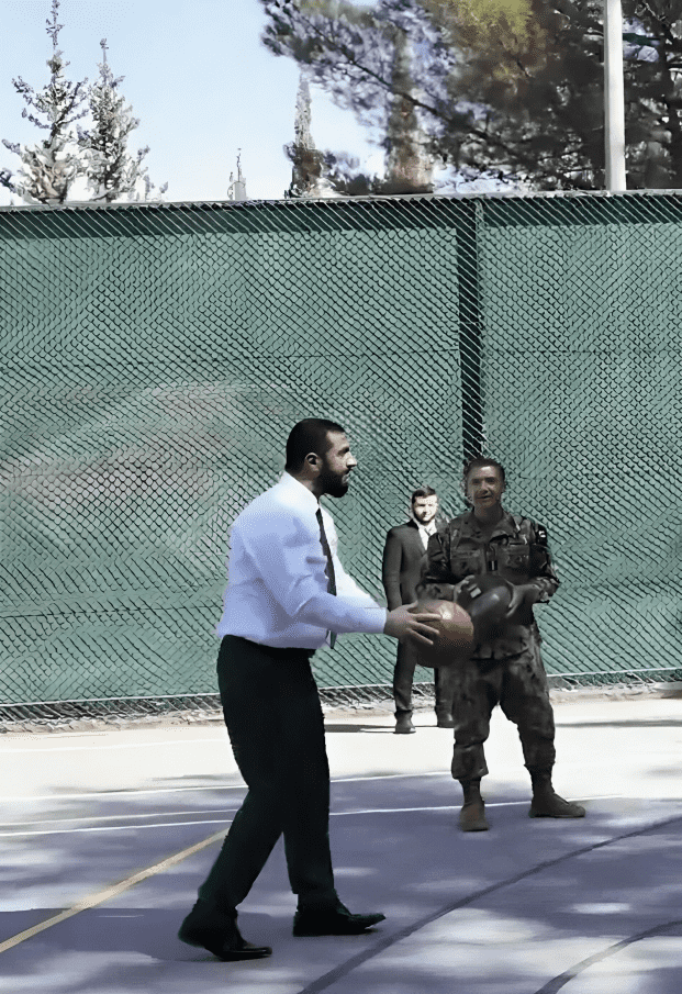 شاهد بالفيديو ... الرئيس الشرع ووزير الخارجية الشيباني يلعبان كرة السلة مع قائد القيادة الوسطى الأمريكية