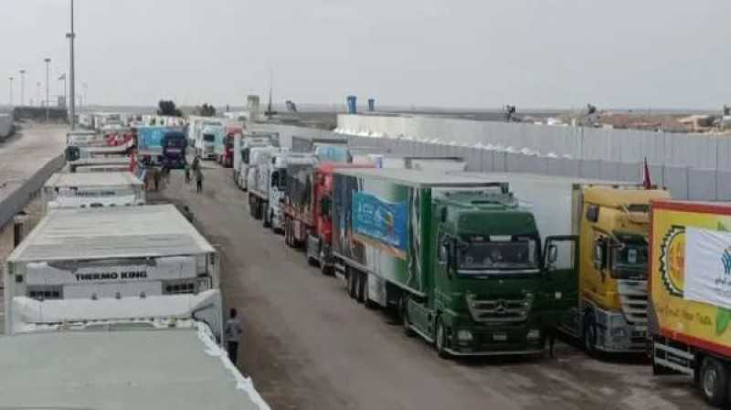 قافلة مساعدات سادسة تفرغ حمولتها بالجانب الفلسطيني من معبر رفح