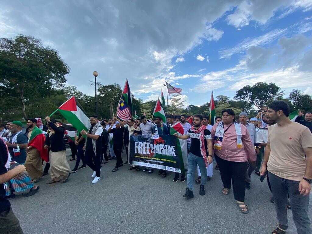 بالفيديو .. طلاب الجامعات الماليزية ينظمون مسيرات تضامنية مع غزة