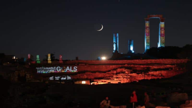 الأمم المتحدة تضيء جبل القلعة بأهداف التنمية المستدامة الـ 17