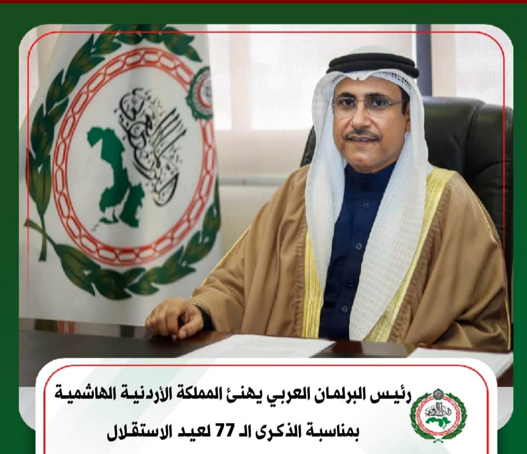 البرلمان العربي يهنئ الأردن بمناسبة الذكرى الـ77 لعيد الاستقلال