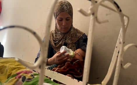 الركام مأوى أم ورضيعتها المريضة في غزة .. فيديو