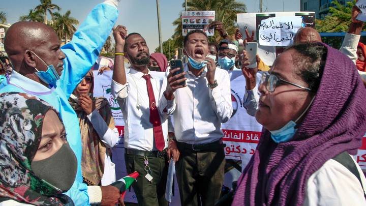 تظاهرة لكوادر طبية بالعاصمة السودانية احتجاجاً على "اقتحام" المشافي