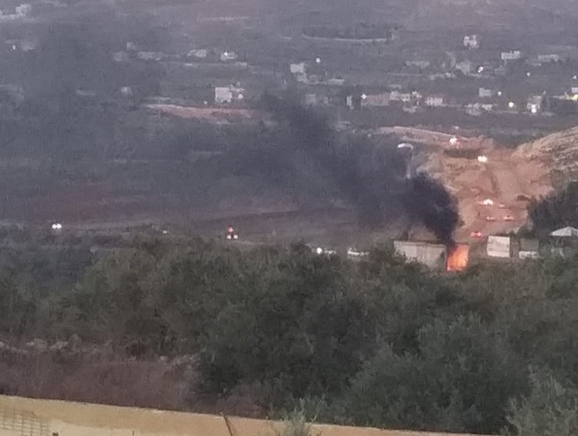 شبان فلسطينيون يحرقون برج مراقبة عسكري اسرائيلي