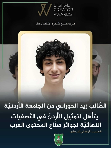 طالب أردني يتأهل لنهائيات جوائز صناع المحتوى العرب الـ3