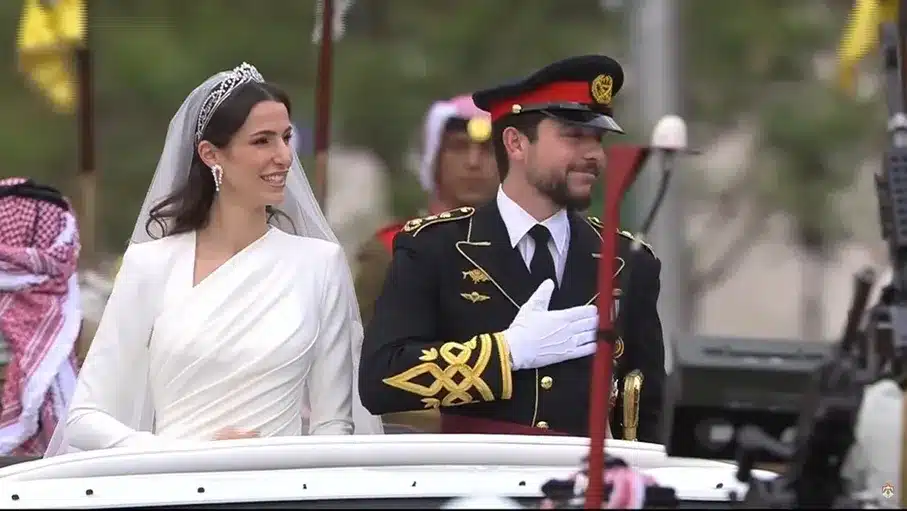 بالفيديو .. زفة أردنية لسمو ولي العهد والأميرة رجوةُ الحسين حين وصولهما إلى قصر الحسينية