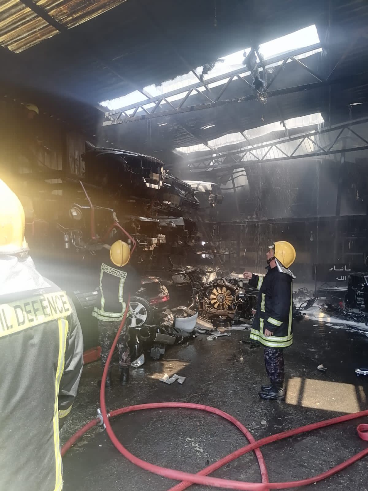 الدفاع المدني يخمد حريقاً داخل محلات تحتوي على قطع سيارات وزيوت بمحافظة العاصمة