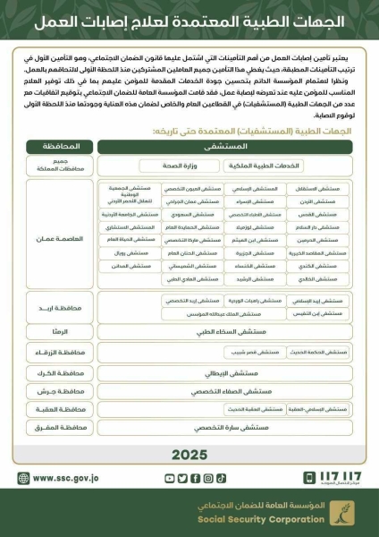 الضمان: خدمة العلاج الفوري تعزز سرعة الاستجابة لإصابات العمل
